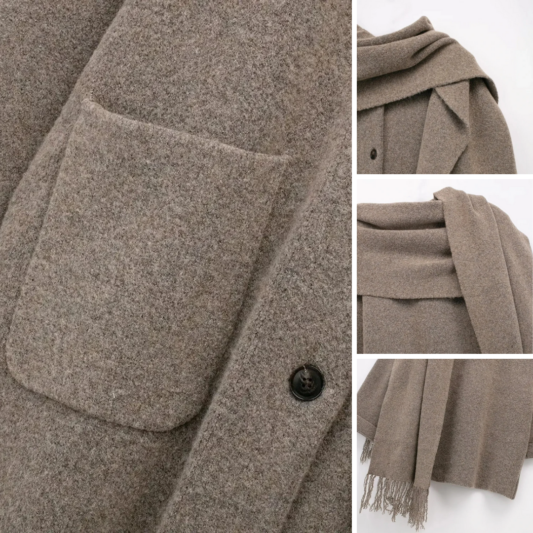Scopri il piacere di avvolgerti nella morbidezza e nel calore del cappotto Cashmere Cloud. Perfetto per l’inverno, combina stile e funzionalità in un solo capo: le due ampie tasche frontali aggiungono praticità senza rinunciare all’eleganza, mentre la sciarpa coordinata, facilmente rimovibile, ti permette di personalizzare il look a seconda dell’occasione.
